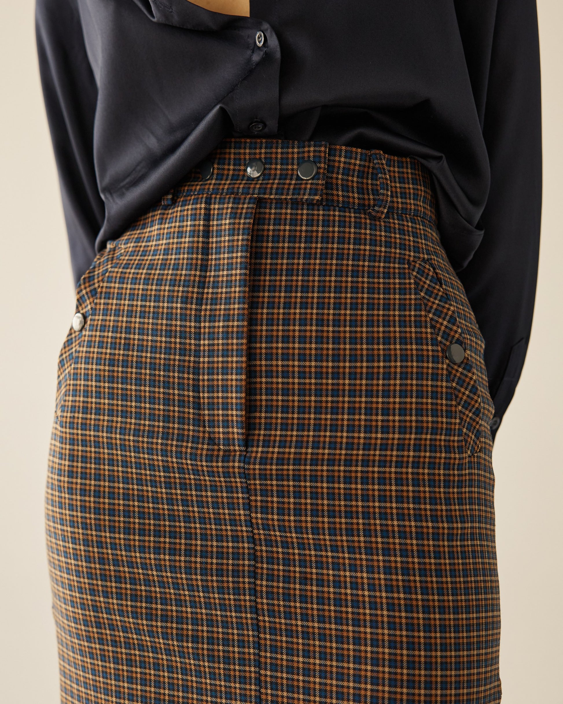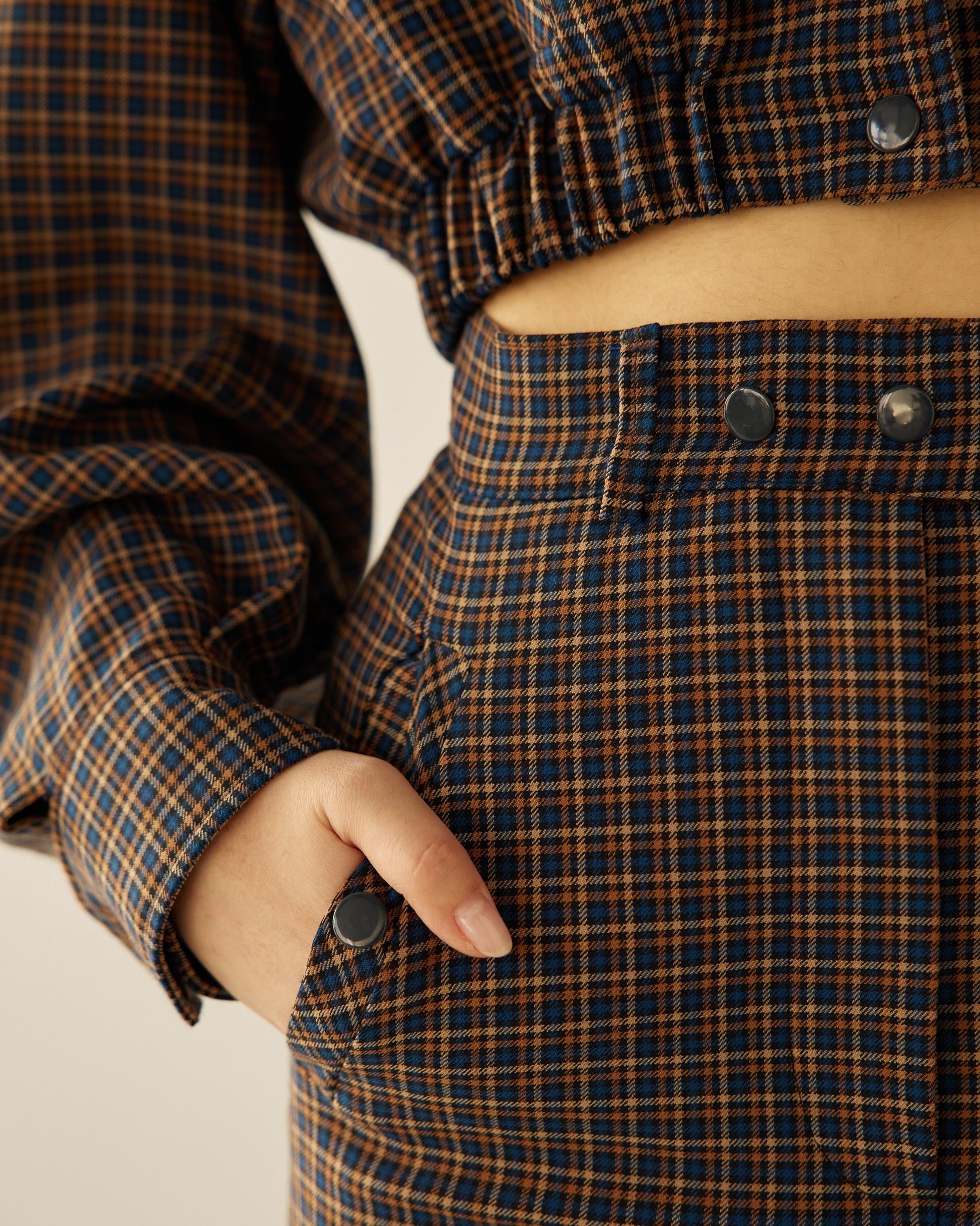 The skirt combines utilitarian design elements with effortlessly unique Amsterdam influences. It’s cut from wool in a straight pencil shape that tapers slightly to a midi hem and has a lock at the back to adjust the width of the skirt. Wear it in combination with other outfits or with the cropped jacket from the same set.